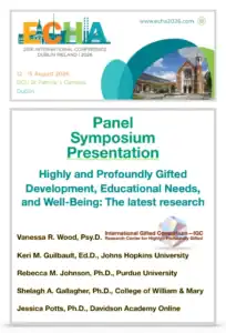 We will be presenting Highly and Profoundly Gifted Development, Educational Needs, and Well-Being: The latest research with friends and colleagues from Johns Hopkins University, Purdue University, College of William & Mary and Davidson Academy Online.