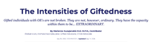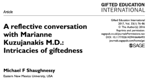 Marianne Kuzujanakis, M.D., M.P.H., is a pediatrician who holds a Master in Public Health in Clinical Effectiveness through Harvard School of Public Health, received as part of a Pediatric Health Services Research fellowship through Boston Children’s Hospital. Dr. Kuzujanakis is co-founder of the SENG Misdiagnosis Initiative, is the chair of the SENG Professional Advisory Committee, and is a longtime homeschool educator. She is also a co-author of the recently released Misdiagnosis & Dual Diagnosis of Gifted Children And Adults [2nd Edition].